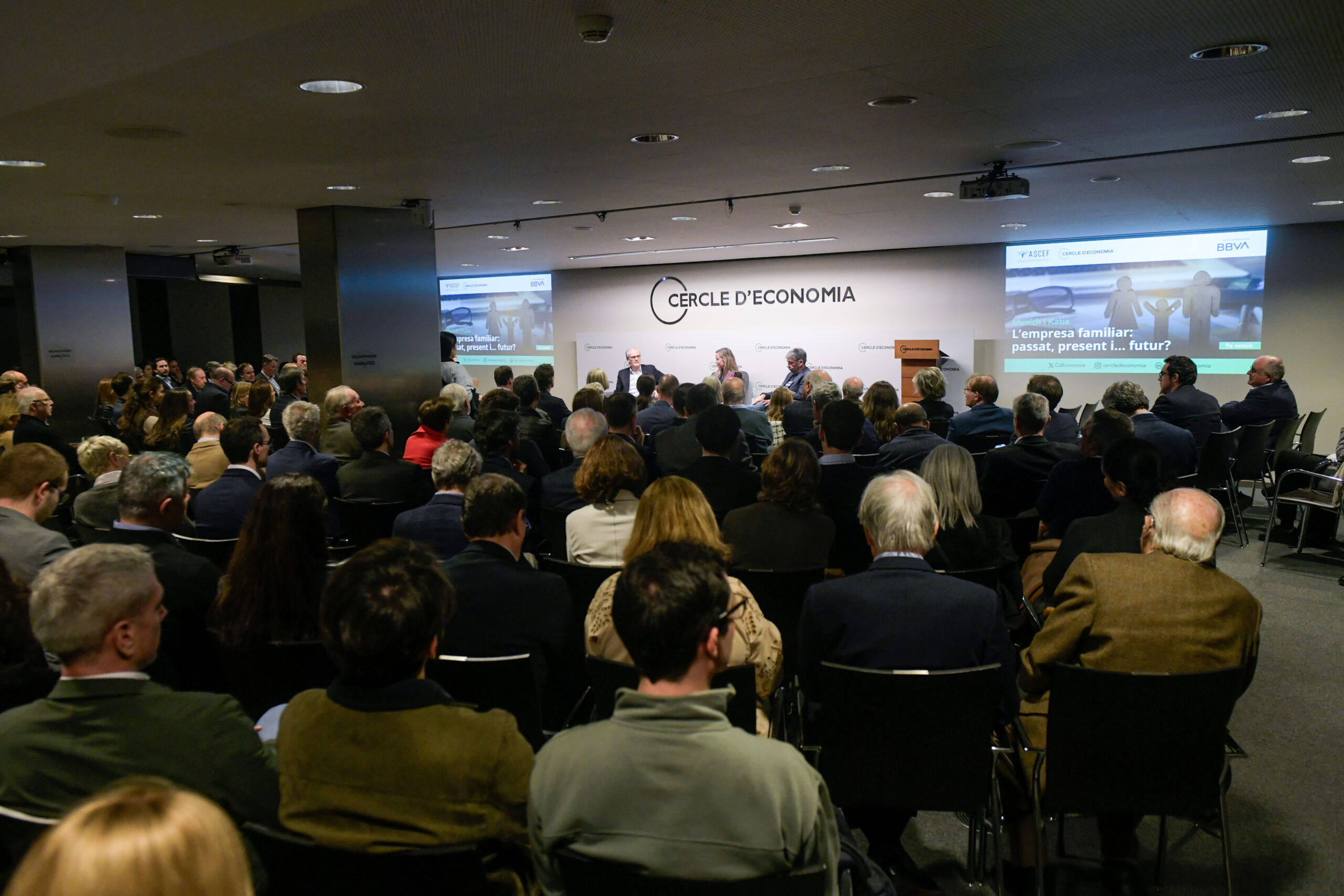 Novena sesión del ciclo Pasado, presente y… ¿futuro? organizado por ASCEF y el Cercle d’Economia, con la colaboración del BBVA. Han participado Xavier Berneda, copropietario y consejero delegado de Munich y Sonia Castelló, consejera delegada y copropietaria de Katia. El acto ha sido moderado por Xavier Cambra, ex secretario general del Cercle d’Economia y presidente de Transmmissio.